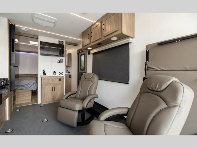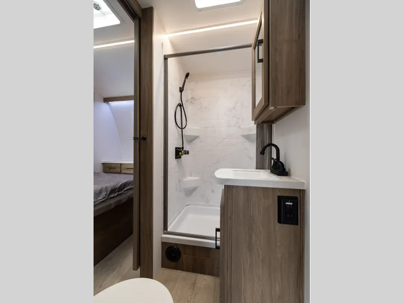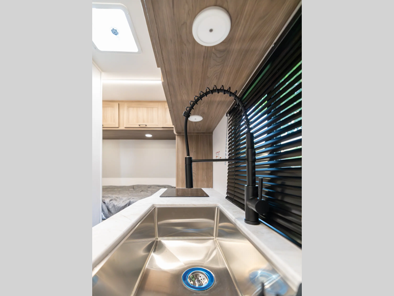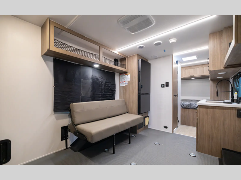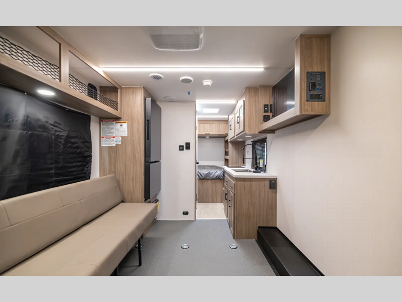 Each is built with Alumicage construction, 102" wide body for a spacious interior, vacuum bonded walls with AZDEL composite panels in the interior and exterior, plus a heated and enclosed underbelly to protect from road debris and help with indoor climate control. You will appreciate the HD rubberized oil/gas/moisture resistant flooring in the garage area to withstand your adventures, and there are many comforts inside to make you feel right at home.