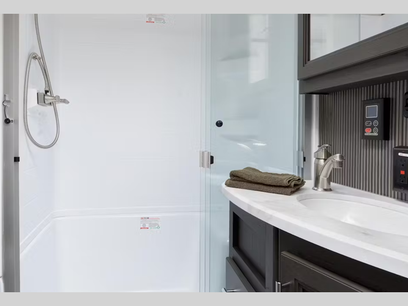 - Large shower w/ retractable door and skylight