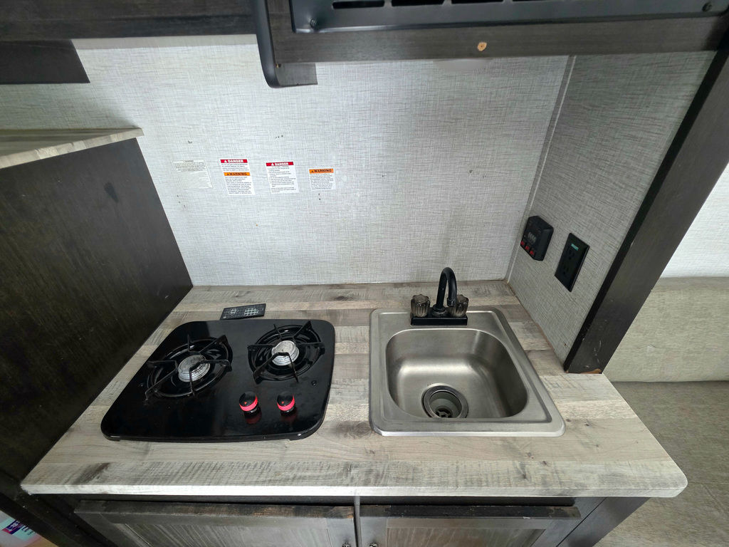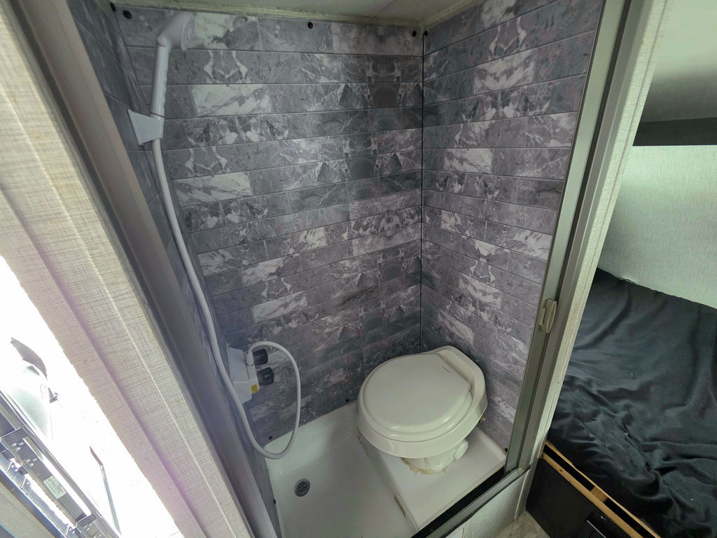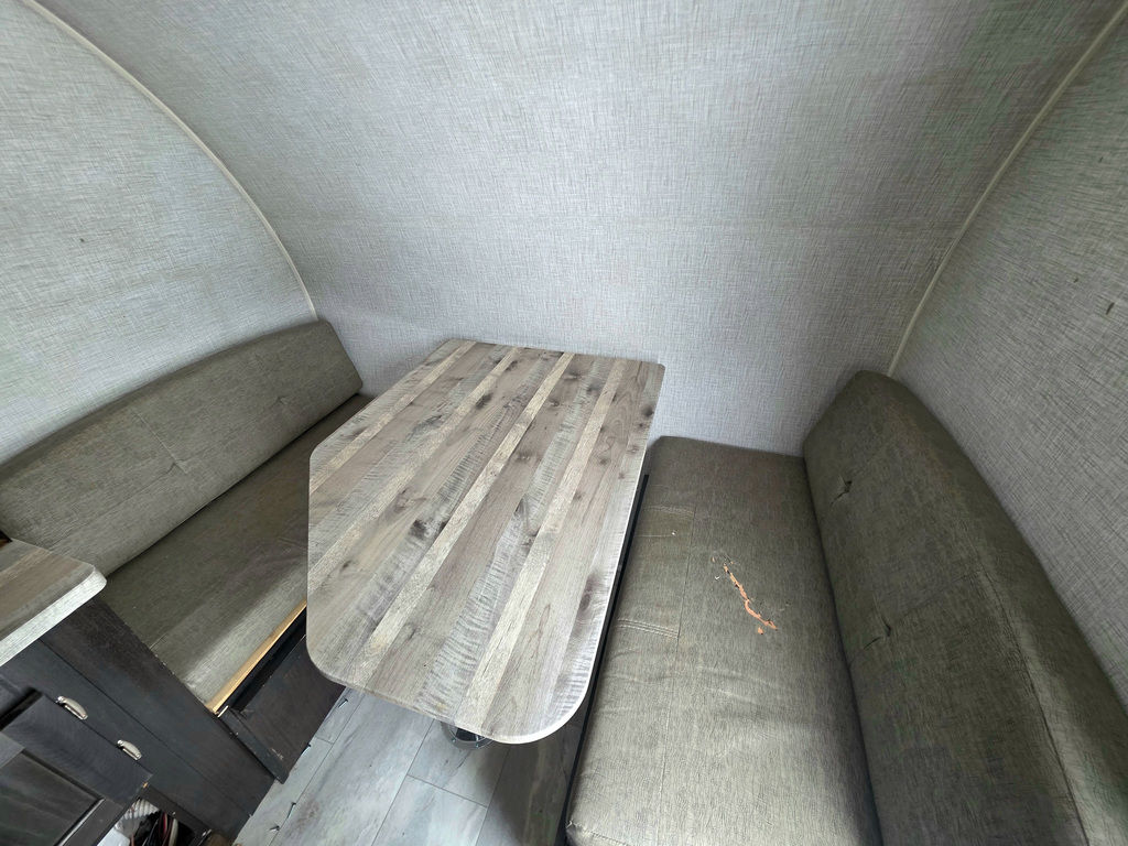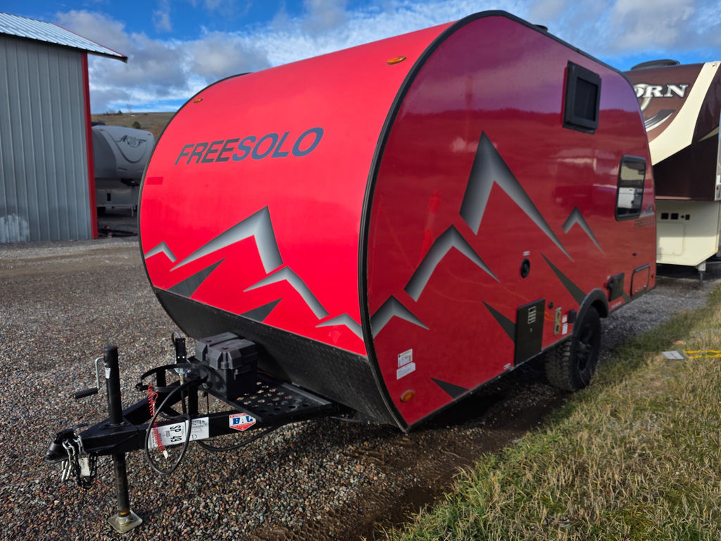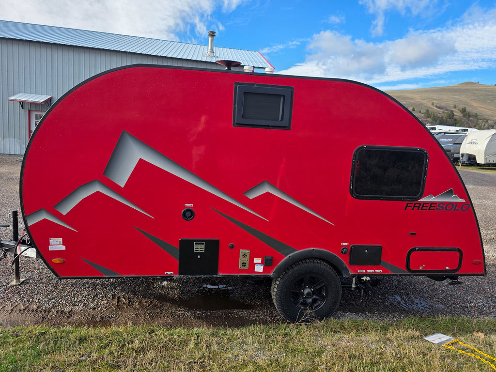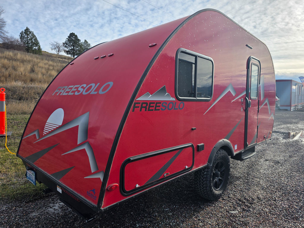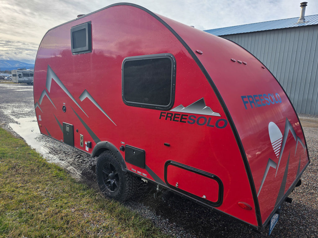 You will have endless nights of fun feeling carefree in this Free Solo Plus teardrop trailer! During the day, you'll be able to use the two-burner cooktop and microwave to create delicious meals, and the 12 volt refrigerator can keep some soft drinks cool for later on. If you spend the afternoon sweating outside, you'll definitely want to come back inside and rinse off in the wet bath. Once nighttime comes, the queen-size bed and booth dinette will provide sleeping space for three tired campers.